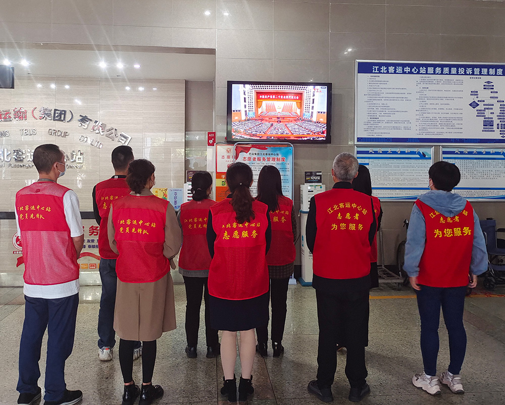 巴運集團江北客運中心一線職工換班時間收看黨的二十大開幕會